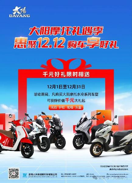 大陽摩托禮遇季,惠聚雙12,購車享好禮!